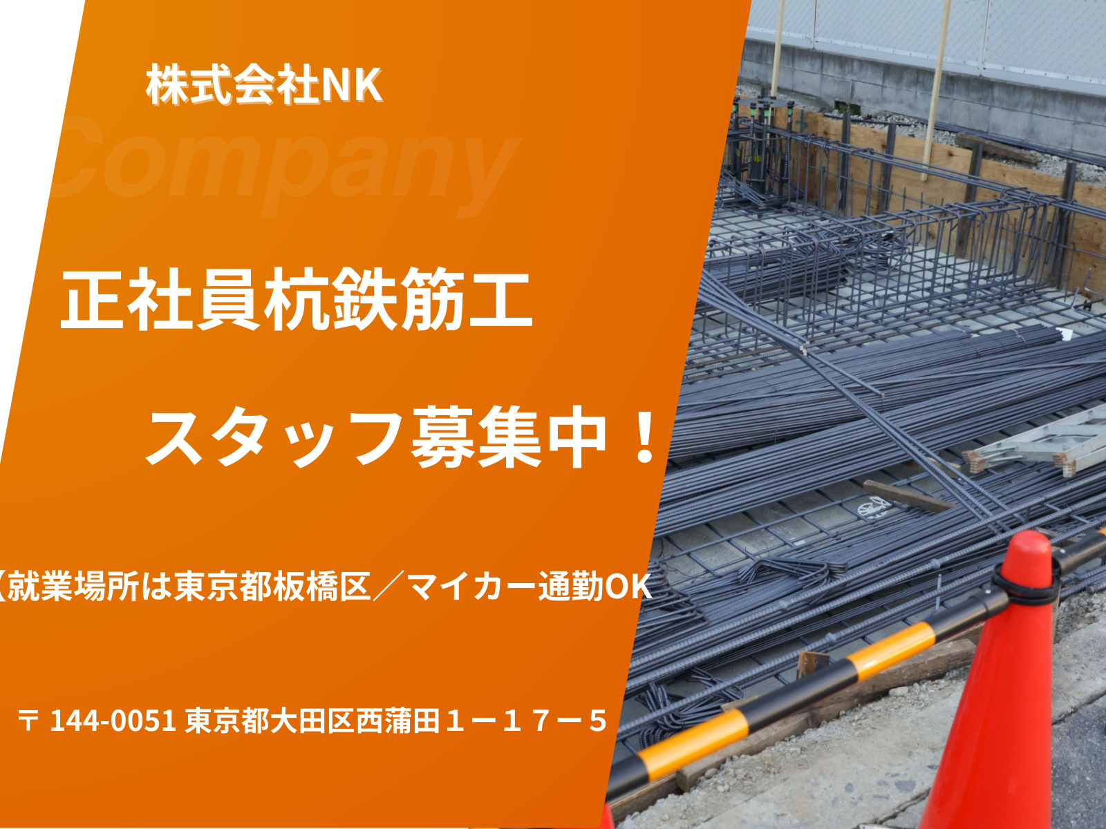 【就業場所は東京都板橋区/マイカー通勤OK】株式会社NK|未経験OKの杭鉄筋工スタッフ募集/安定と高収入を叶える職場