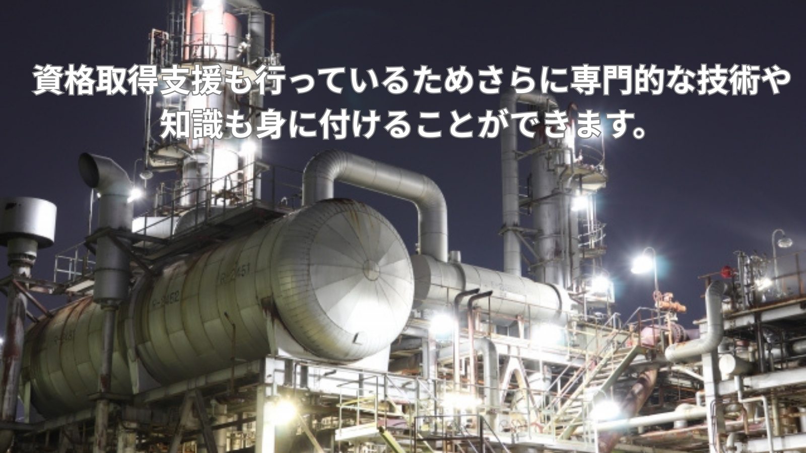 各種プラントの機器の製作・据付、配管などの製作・溶接の仕事です。また、その他付随する業務全般を行っていただきます。たまに出張の仕事もありますが、出張手当として3,000円/日×出張日数を支給します。最初は先輩の簡単な補助業務からスタートしていくので、だんだんと慣れていただければOKです。